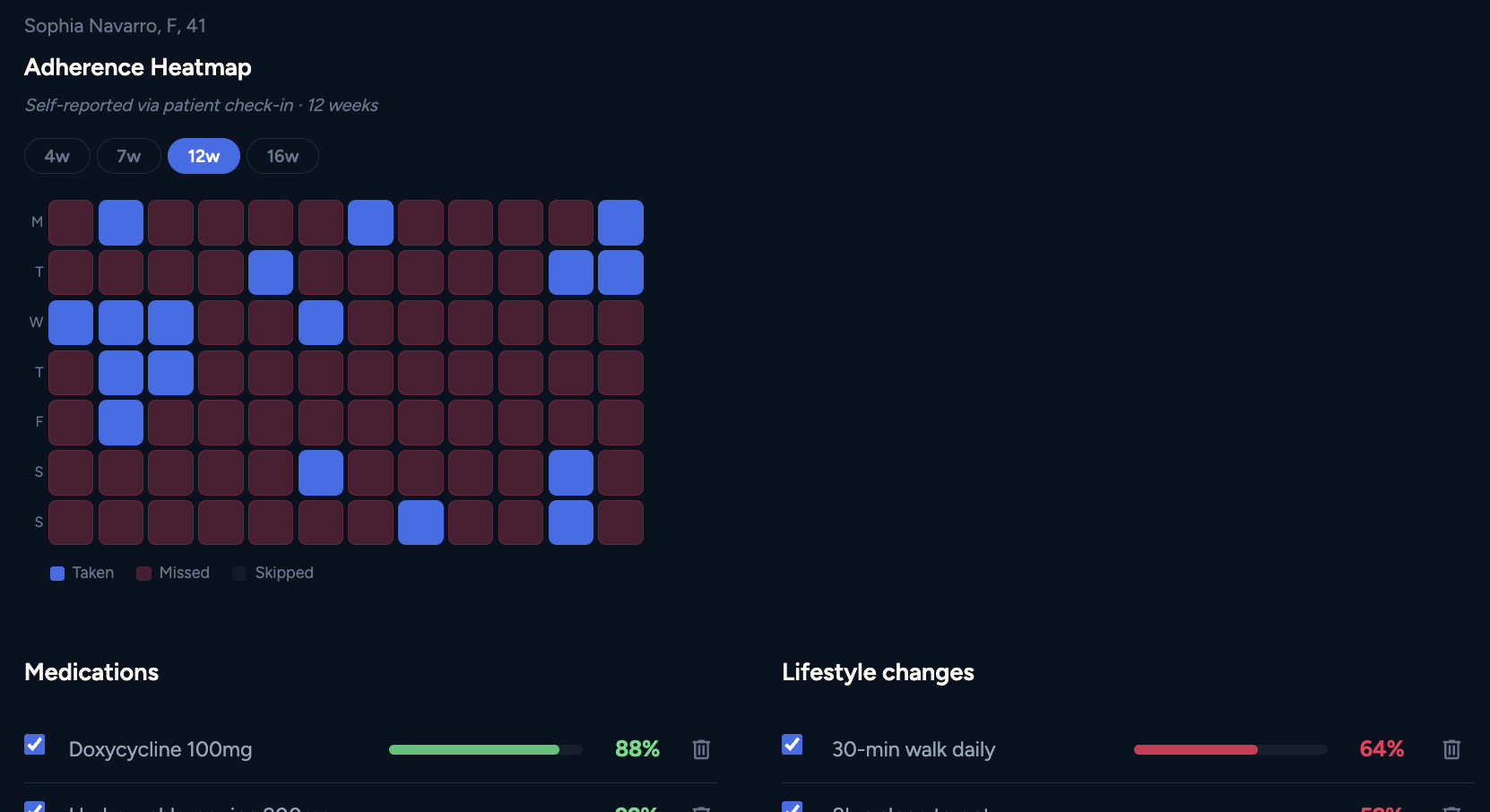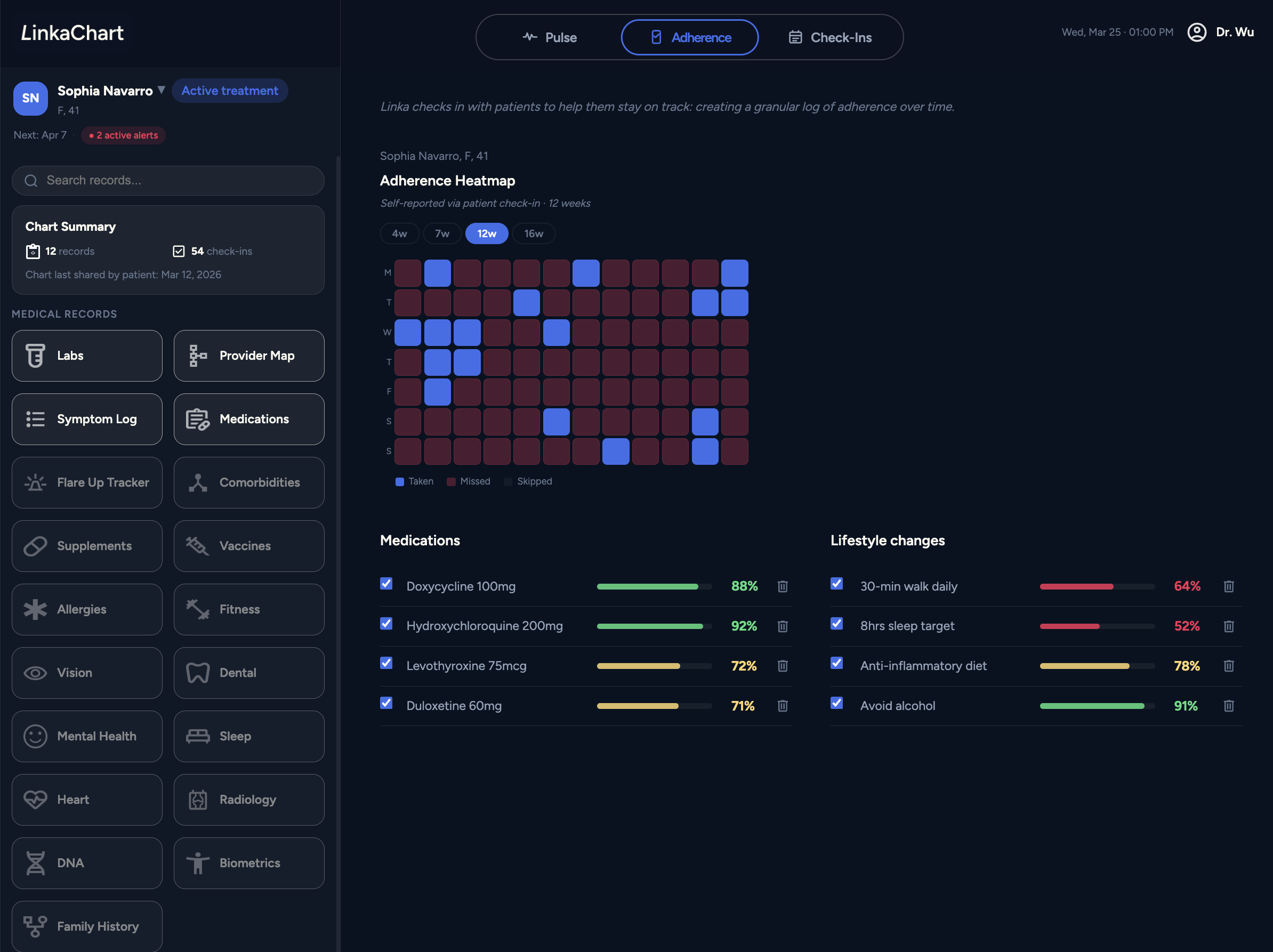 Linka helps patients stay on track with medications and lifestyle changes through reminders and engagement tools, creating a granular log of adherence over time.